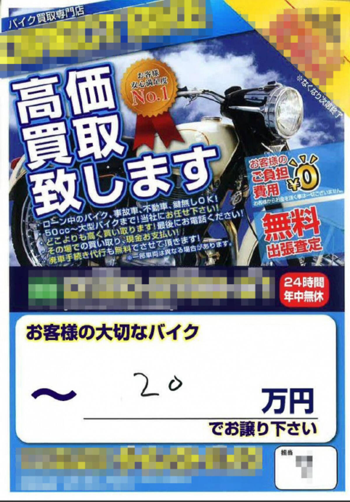 Part2 バイク買い取りします のチラシが貼ってあったら要注意 即撤去と盗難対策を 後日 自己防衛策など Fz1 Fazer Mc23 Jade Hf05 Lead90 Bike のページ あるふぁ Motovlog モトブログ 楽天ブログ